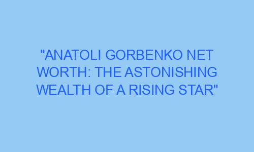Anatoli Gorbenko Net Worth: The Astonishing Wealth of a Rising Star
