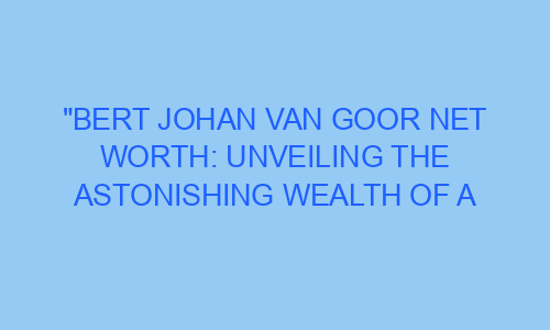 Bert Johan van Goor Net Worth: Unveiling the Astonishing Wealth of a Remarkable Tycoon