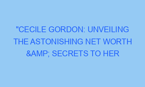 Once upon a time, in a small town nestled in the mountains, there lived a woman named Cecile Gordon. Cecile was renowned for her astounding net worth and the secrets to her success. People couldn’t help but wonder how she managed to amass such wealth and achieve her dreams. Today, we’ll take you on a journey to uncover the astonishing net worth of Cecile Gordon and unveil the secrets behind her remarkable success.