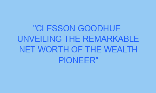 Once upon a time, in a quiet little town, there lived a man named Clesson Goodhue. This unassuming individual would soon become a pioneer in the world of wealth and finance. Clesson’s incredible journey from rags to riches has captivated the hearts and minds of many. Today, we will delve into the remarkable net worth accumulated by this wealth pioneer and uncover the secrets to his success. Prepare to be inspired as we explore the life and accomplishments of Clesson Goodhue.