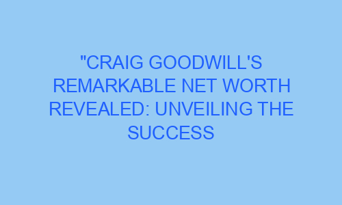 Craig Goodwill’s Remarkable Net Worth Revealed: Unveiling the Success Behind a Master Filmmaker