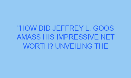 How Did Jeffrey L. Goos Amass His Impressive Net Worth? Unveiling the Secrets Behind His Success