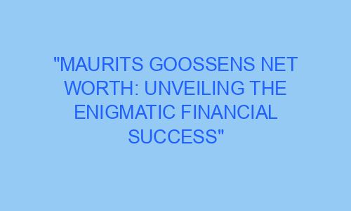 Maurits Goossens Net Worth: Unveiling the Enigmatic Financial Success