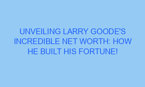 Unveiling Larry Goode’s Incredible Net Worth: How He Built His Fortune! Introduction: Imagine waking up one day and realizing you have more money than you could ever dream of. That’s the reality for Larry Goode, a man who has built an incredible net worth through hard work, determination, and a sprinkle of luck. In this