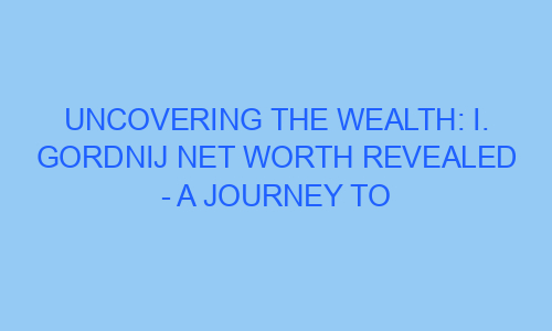 Uncovering the Wealth: I. Gordnij Net Worth Revealed – A Journey to Financial Success Introduction: Imagine a life where money is no longer a concern, where one’s financial needs are met effortlessly, and dreams can be pursued without any limitations. That is the world of the rich and famous, a world many aspire to enter.