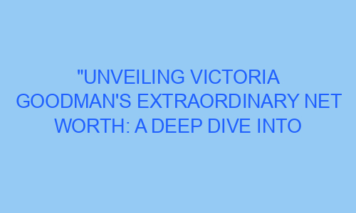 Unveiling Victoria Goodman’s Extraordinary Net Worth: A Deep Dive into the Wealth of a Remarkable Visionary Introduction: From humble beginnings to incredible success, Victoria Goodman has built an empire that astounds the world. Her story is one of determination, hard work, and unwavering vision. In this blog post, we will take an in-depth look at