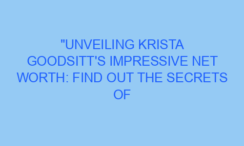 Unveiling Krista Goodsitt’s Impressive Net Worth: Find out the Secrets of Her Success! Introduction: Have you ever wondered how successful people achieve their great wealth? One such person is Krista Goodsitt, who has made a name for herself as a highly accomplished entrepreneur. In this blog post, we will dive into Krista Goodsitt’s impressive net
