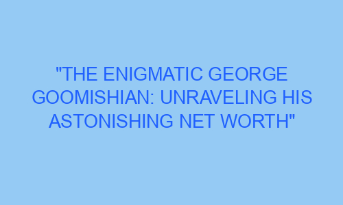 The Enigmatic George Goomishian: Unraveling His Astonishing Net Worth