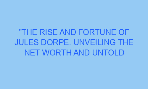 The Rise and Fortune of Jules Dorpe: Unveiling the Net Worth and Untold Success