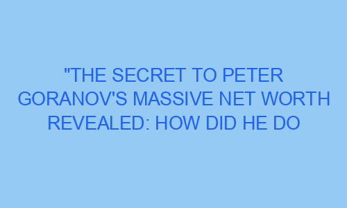 The Secret to Peter Goranov’s Massive Net Worth Revealed: How Did He Do It?