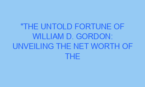 William D. Gordon’s story is a testament to the power of determination and resilience. From his humble beginnings to the creation of a colossal fortune, his journey is nothing short of extraordinary. While the exact extent of his net worth may forever remain a mystery, one thing is certain: William D. Gordon’s legacy as a successful entrepreneur and philanthropist will continue to inspire generations to come. So, dear readers, let us learn from his tale and strive to chase our dreams with unwavering persistence. After all, the untold fortune of William D. Gordon teaches us that greatness can be achieved by anyone, regardless of their background or circumstances.