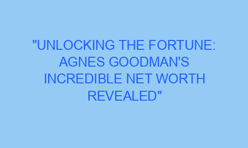 In this incredible story, we will unveil the astonishing net worth of Agnes Goodman. Agnes Goodman, a business tycoon, has been the talk of the town lately. People are curious to know the secret behind her immense wealth and how she managed to unlock her fortune. Get ready to embark on a journey of discovery as we dive deep into Agnes Goodman’s life and reveal her inspiring achievements. So join us as we unravel the mystery behind her incredible net worth.