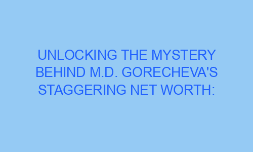 Have you ever wondered how some individuals accumulate immense wealth over their lifetime? M.D. Gorecheva, a renowned entrepreneur and investor, is one such person who has unlocked the secrets to achieving staggering net worth. In this blog post, we will delve into the various aspects of her success story, revealing the secrets that have propelled her to astronomical financial heights.