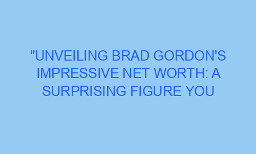 Have you ever wondered about the net worth of famous personalities? It’s always intriguing to uncover the fortunes of successful individuals. Today, we are going to delve into the impressive net worth of Brad Gordon, a well-known entrepreneur and investor. Brace yourself for a surprising figure that you won’t believe!