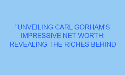 Have you ever wondered how much money some people make? Well, today we are going to dive into the fascinating world of wealth and take a closer look at the impressive net worth of a remarkable man named Carl Gorham. Carl Gorham is widely recognized for his incredible career achievements, but what many people may not know is just how much money he has accumulated over the years. Get ready to be amazed as we unravel the riches behind Carl Gorham’s remarkable career!