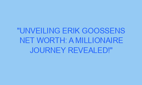Unveiling Erik Goossens Net Worth: A Millionaire Journey Revealed!