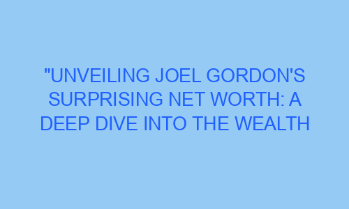 Unveiling Joel Gordon’s Surprising Net Worth: A Deep Dive into the Wealth of a Rising Star
